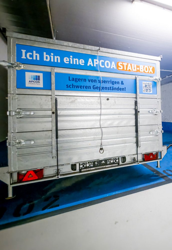 Mehr Platz. Mitten in der Stadt. Die APCOA STAU-Boxen – 9 m³ Lagerfläche in bester Lage – direkt mit dem Auto erreichbar.