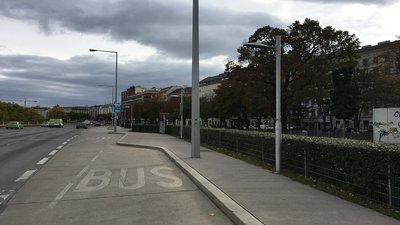 This bus parking space is located in the 1st district of Vienna, very close to the Danube Canal.